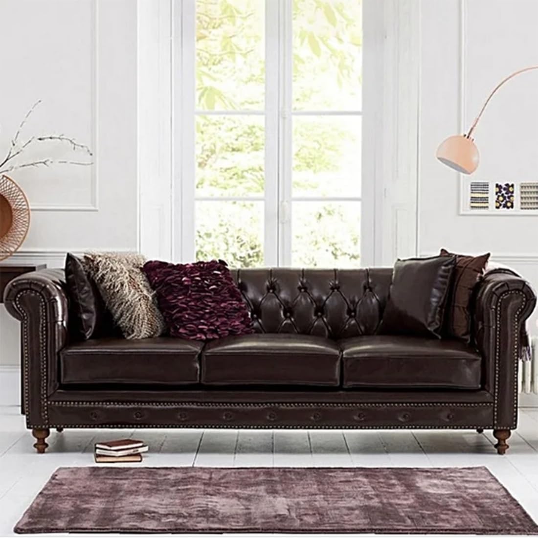 Luxury Chesterfield Leather Sofa – Classic Brown 3-Seater Couch for Living Room