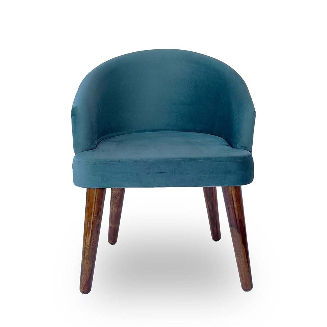 Modern Barrel Accent Chair with Teal Upholstery & Solid Wood Legs